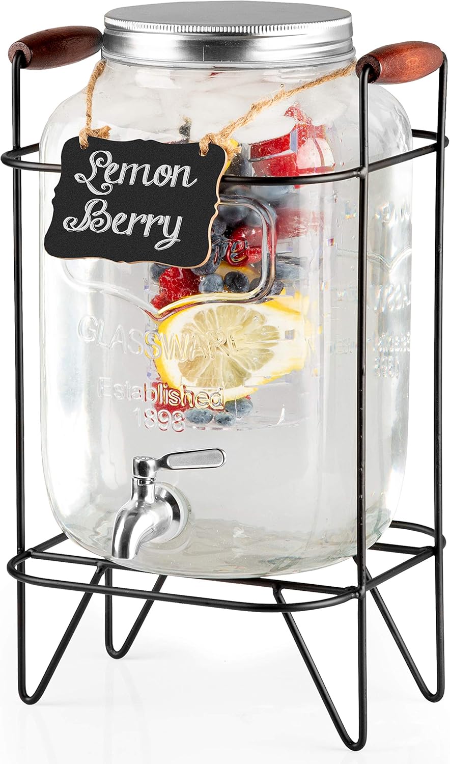 Glass Mason Jar Drink Dispenser With Chalkboard Label Beverage