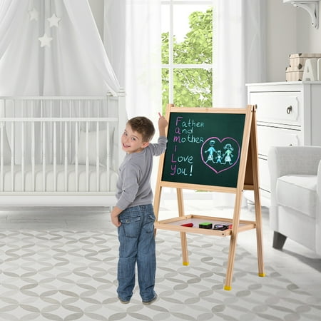 Wooden Art Easel Magnetic Double Sided Chalkboard Dry Erase