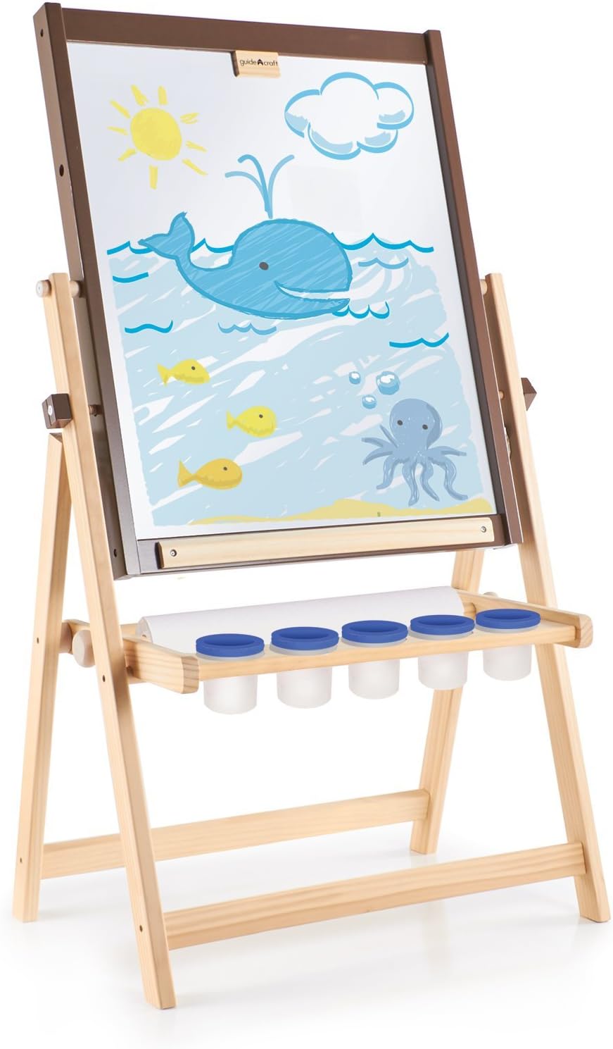 Guidecraft Wooden Floor Easel Paint Cups Kids Double Sided Dry