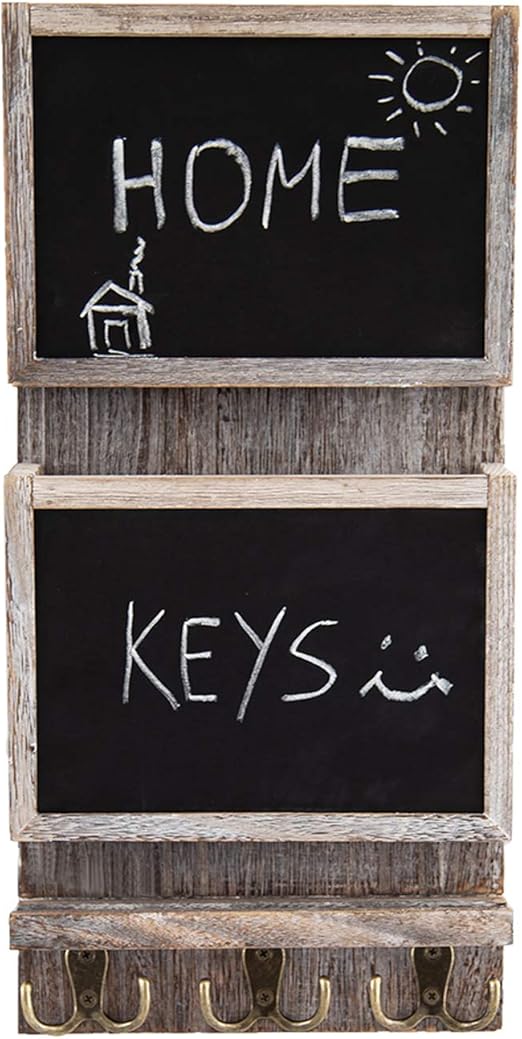 Rustic Wall Key Mail Organizer Entryway Chalkboard Memo Holder