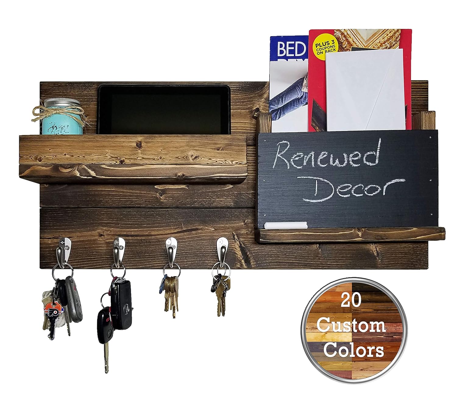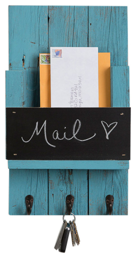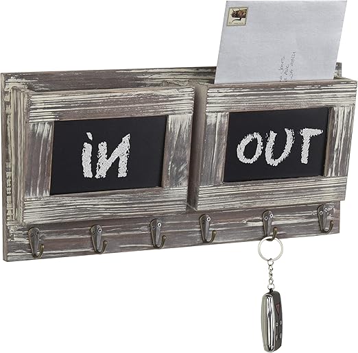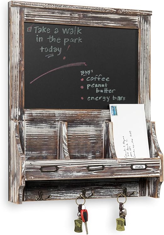 Hengsheng Wall Mounted Wood Mail Holder With Rustic Chalkboard Key