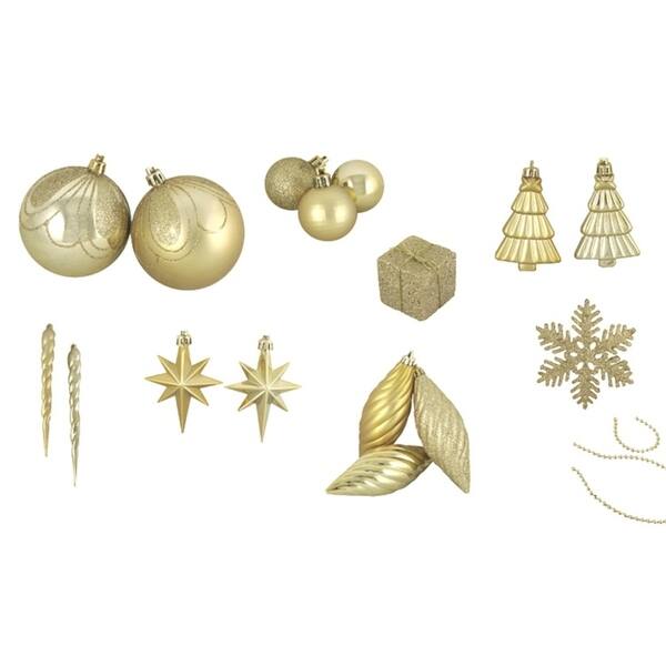 125 Piece Club Pack Of Shatterproof Champagne Gold Christmas