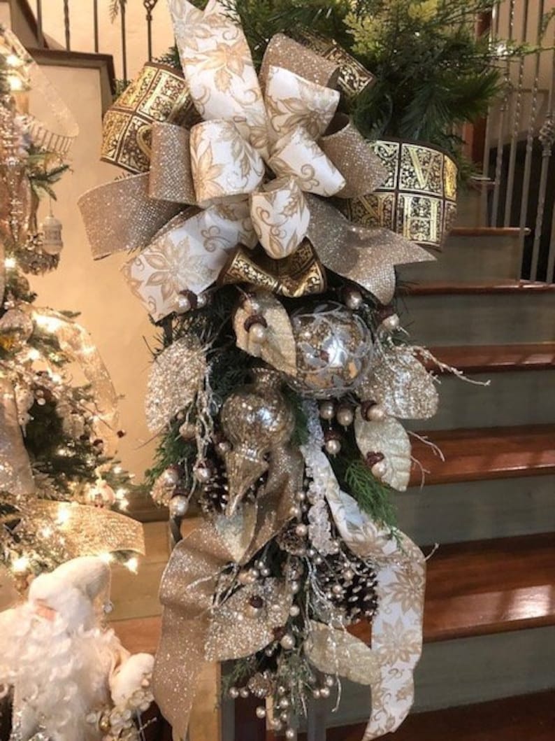 Champagne Christmas Wreath Swag Mercury Glass Ornaments Etsy