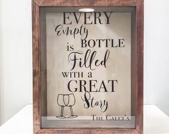 Personalized Wooden Wine Cork Holder Shadow Box Signature Script