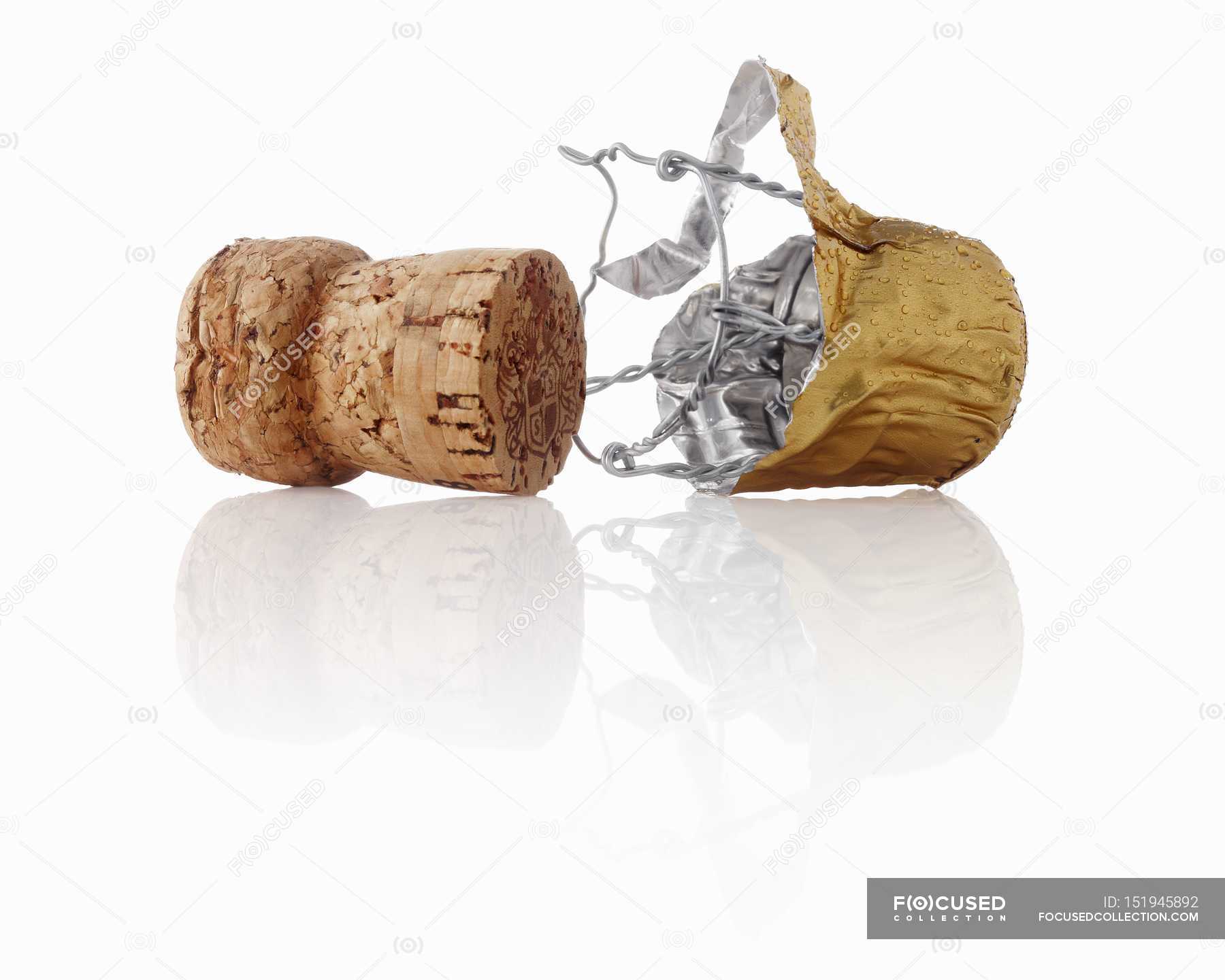 Champagne Cork With Wire Holder Isolated On White Stock Photo