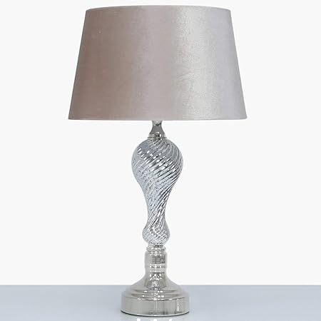 Angravehome Silver Mercury Glass Table Lamp And Champagne Velvet
