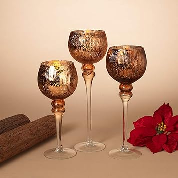 Buy Gerson 2491970 Champagne Mercury Glass Goblet Candleholders