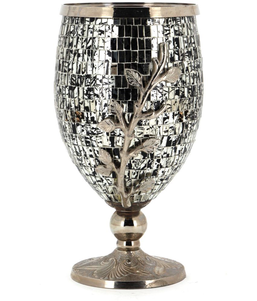 Decorative Large Metal Floor Vase With Glass Mosaic In Silver At