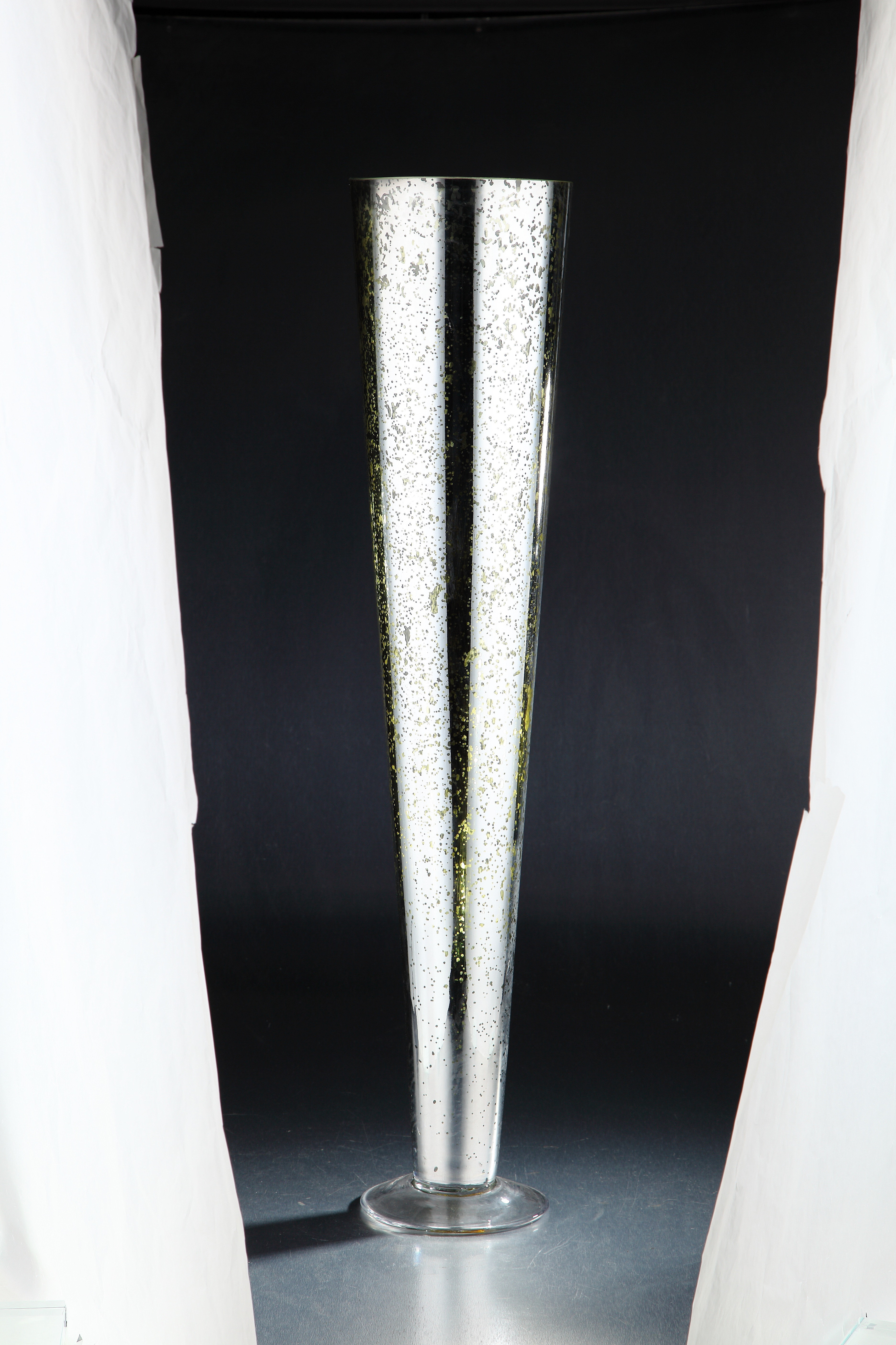 48 Silver Polystone Mirror Mosaic Trumpet Floor Vase