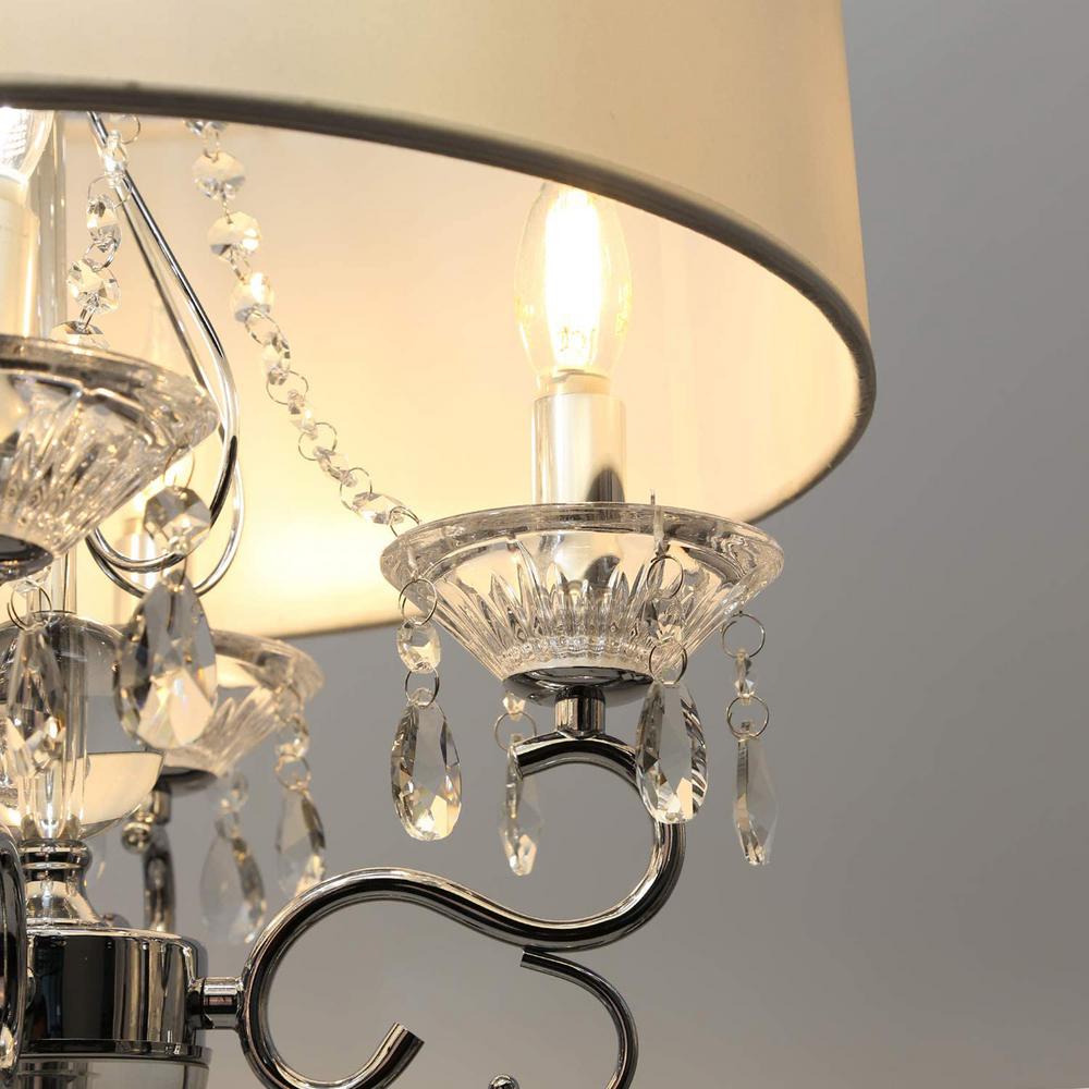 4 Light Crystal Chandelier Ceiling Light With White Fabric Round
