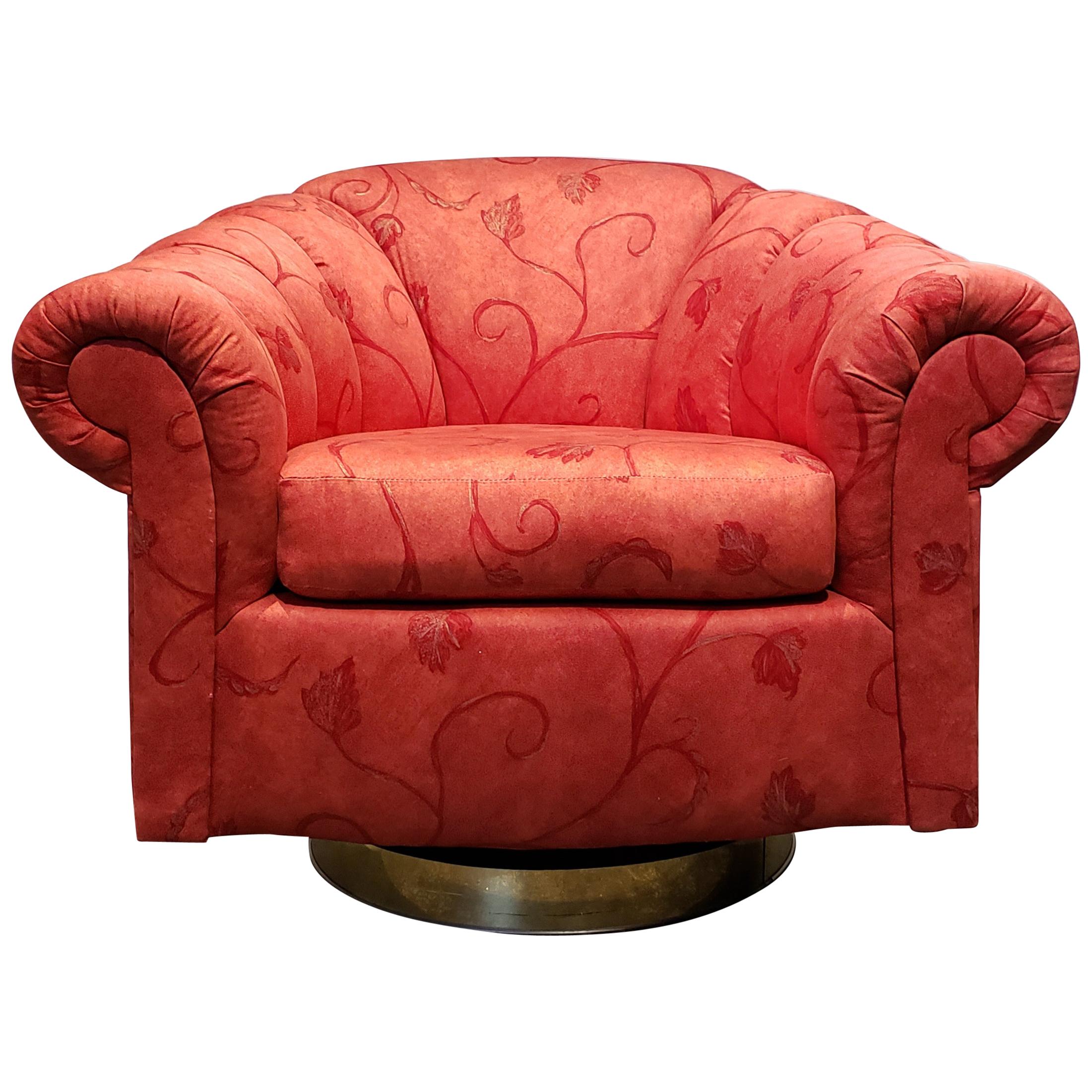 Large 1980s Channel Tufted Scalloped Swivel Club Chair For Sale At