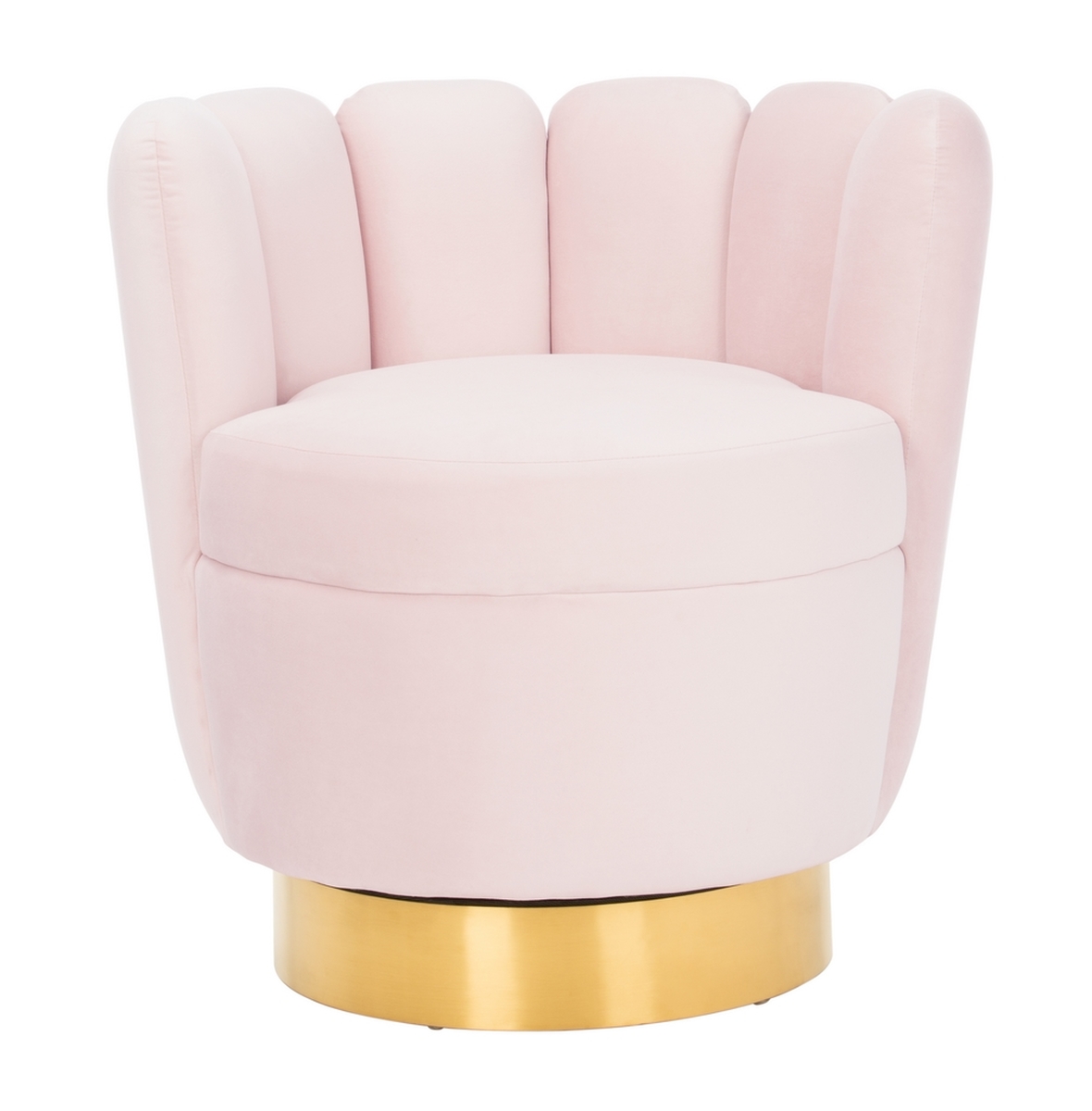 Melanie Retro Blush Pink Channel Tufted Velvet Accent Chair W Gold