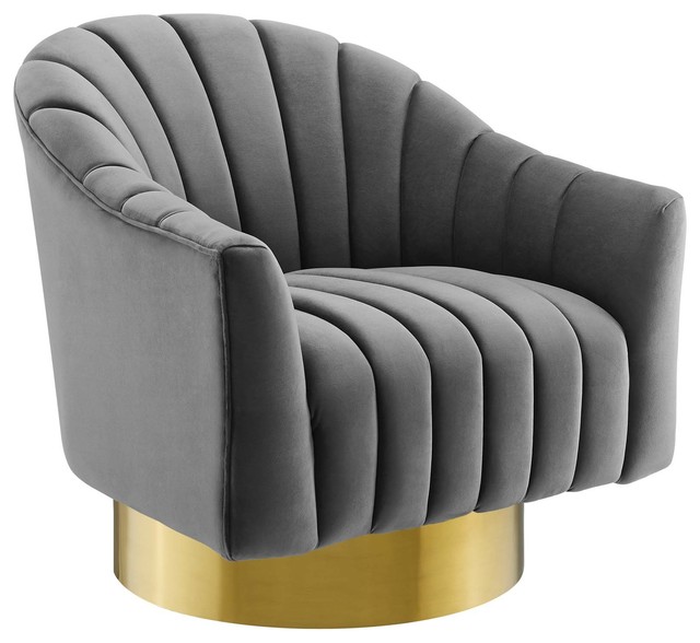 Buoyant Vertical Channel Tufted Accent Lounge Velvet Swivel Chair