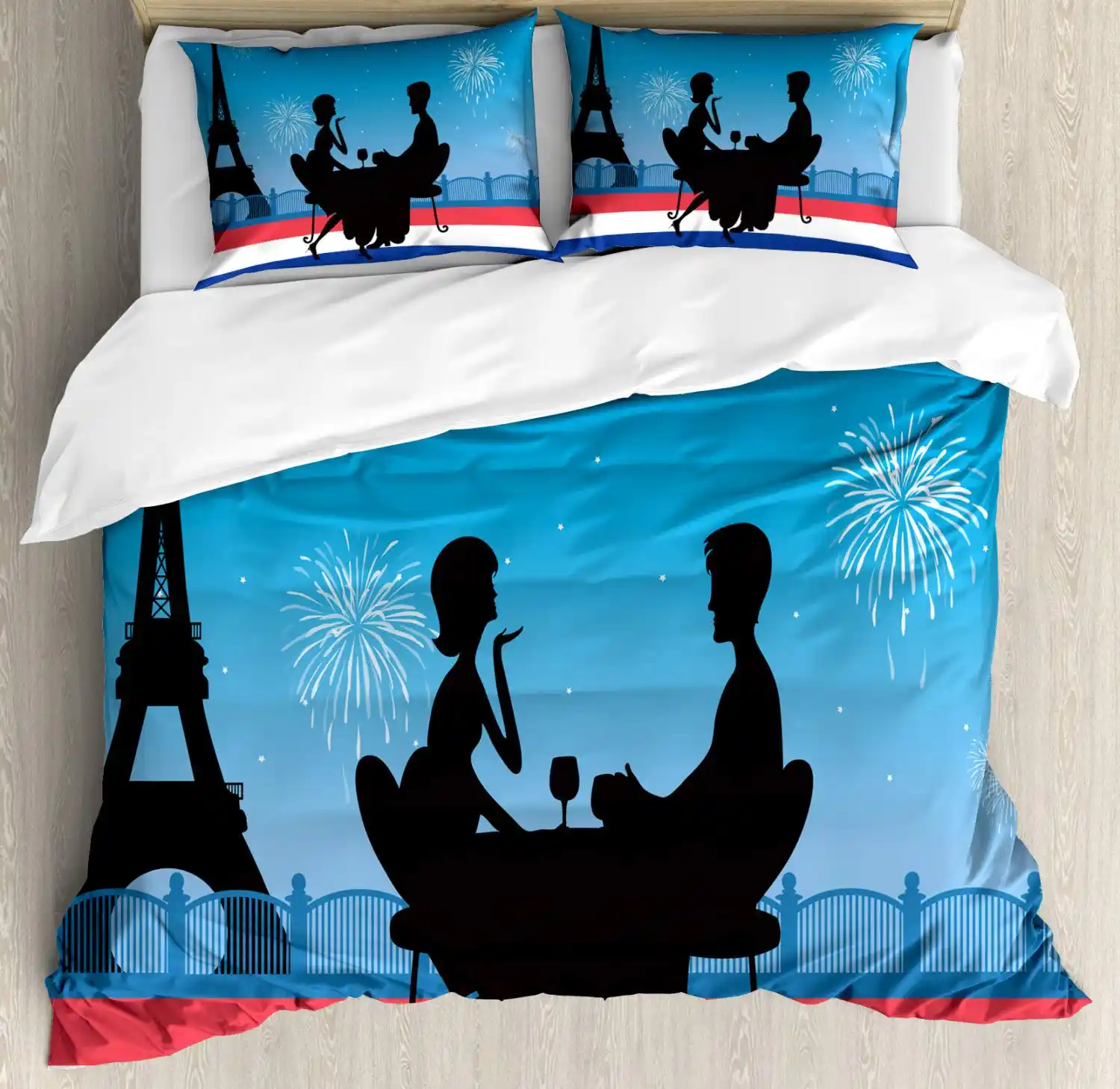 Eiffel Tower Duvet Cover Set Couple Having Wine By A Landscape 3