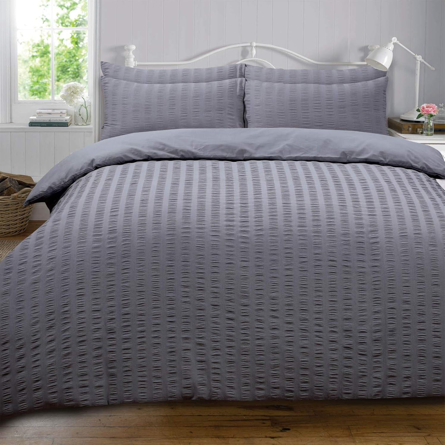 Highams Seersucker Duvet Cover With Pillow Case Bedding Set