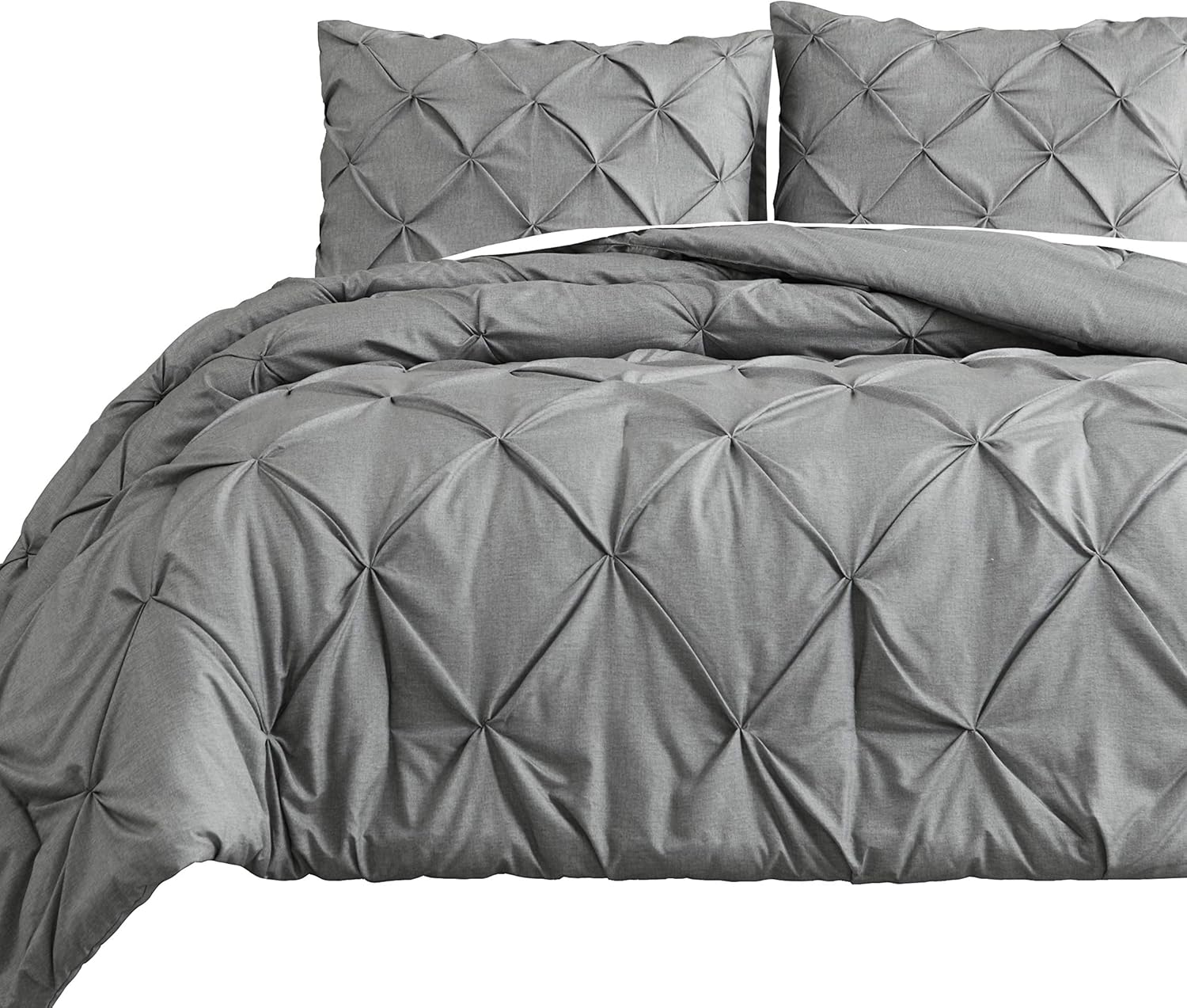 Ucharge Unique Pinch Pleat Pintuck Duvet Cover Set 3 Pieces