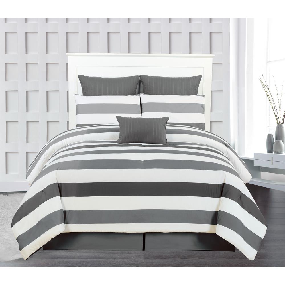 Chezmoi Collection Lex 7 Piece Hotel Dobby Stripe Comforter Set