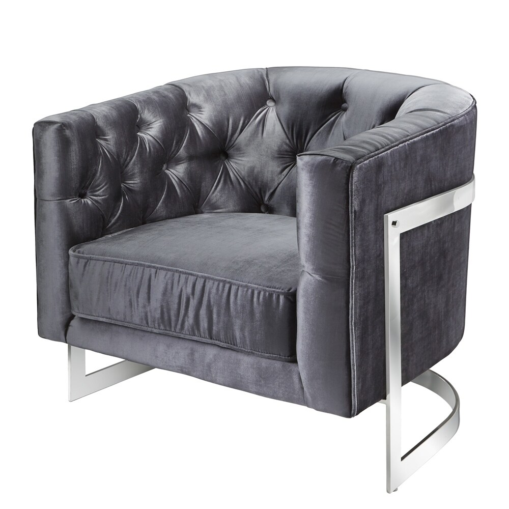 Elvis Accent Chair Gy Ac 7988 Stainless Steel Legs Charcoal Velvet