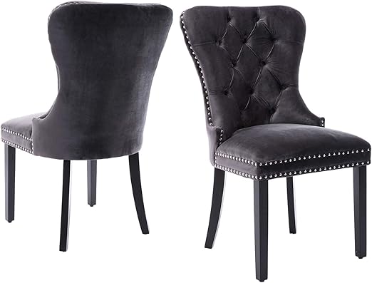 Amazon Com Kmax Velvet Dining Chairs Dark Grey Elegant