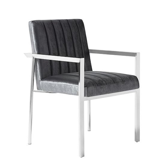 Quentin Accent Chair In Charcoal Velvet And Stainless Steel