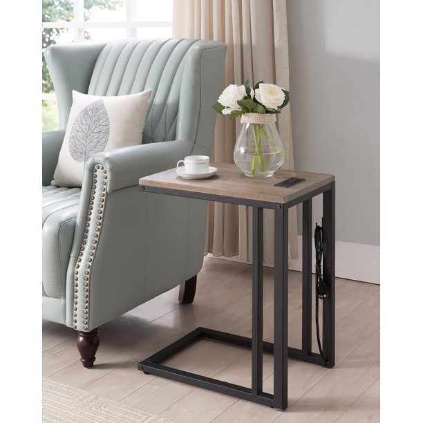 Soho C Table With Usb Charging Station In Drift Wood Walmart Com