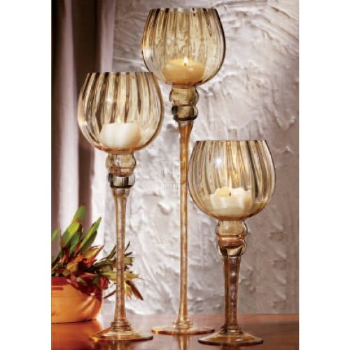 Home Essentials Charisma Amber Hurricane Candle Holders Set Of 3