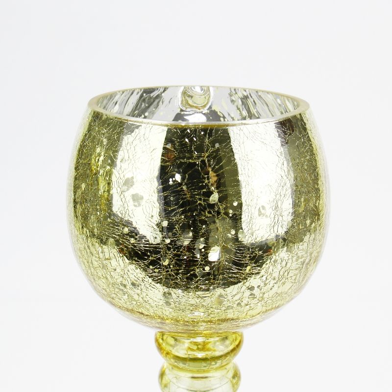 Set Of 3 Metallic Gold Crackle Mercury Glass Candle Holders