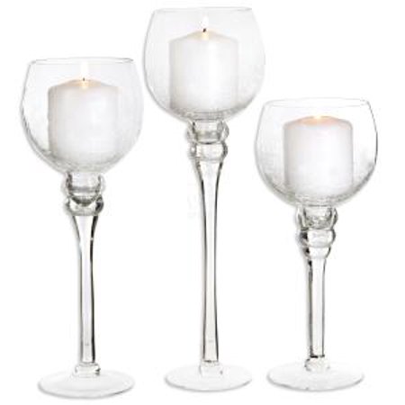 Clear Crackled Glass Hurricane Candle Holders Set Of 3 Assorted