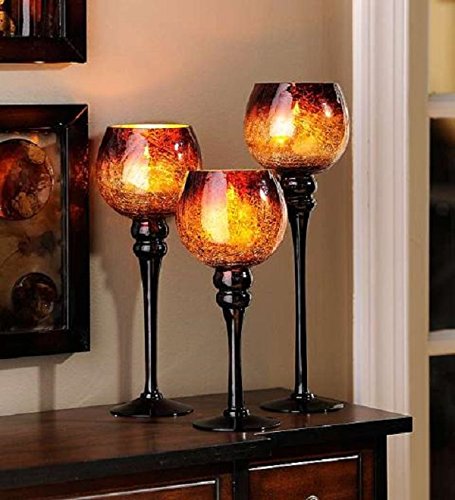 Home Essentials Charisma Amber Hurricane Candle Holders Set Of 3