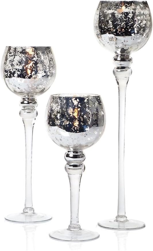 Cys Metallic Mercury Glass Candle Holders Traditional