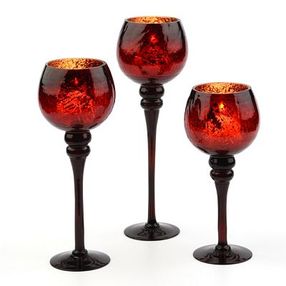 Set Of 3 Metallic Etched Red Mercury Glass Candle Holders Glass