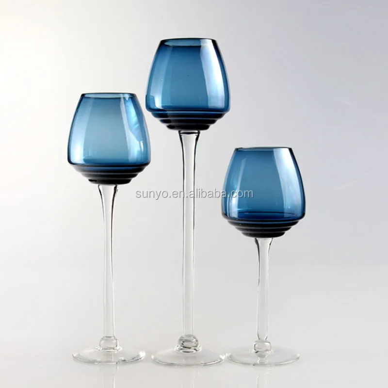 Set Of 2 Champagne Long Stem Ombre Glass Goblet Candle Holders