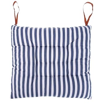 Uk Made Navy Blue Checked Tie On Chunky Padded Seat Pad Chair Pad