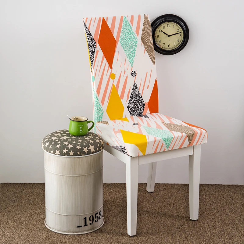 Print Checked Flower Stretch Removable Washable Short Dining Chair