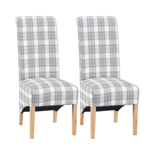 Westwood Linen Fabric Dining Chairs High Back Set Of 2 Grey Check
