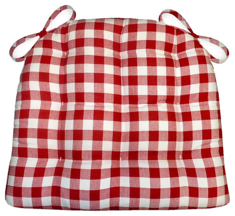 Classic Check Red Dining Chair Pads Latex Foam Fill Reversible