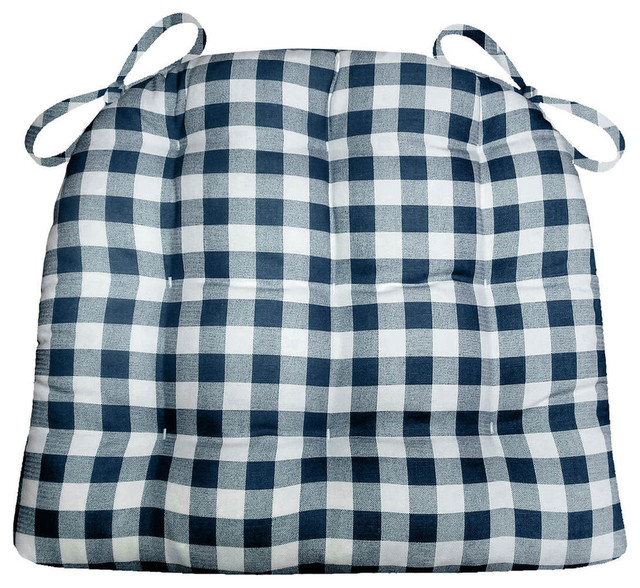 Classic Check Navy Blue Dining Chair Pads Latex Foam Fill Made