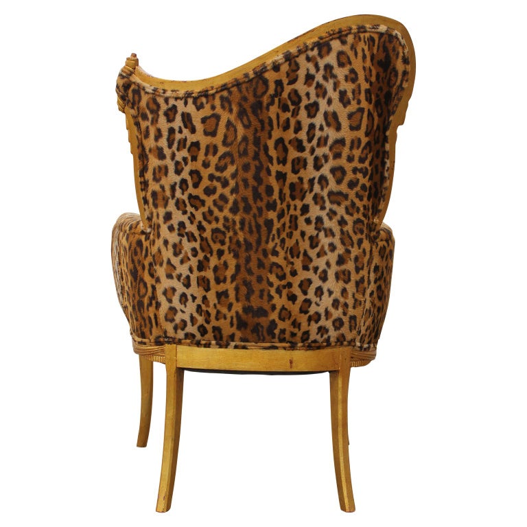 Pair Of Gold Leaf Cheetah Print Reupholstered Fireside Chairs At