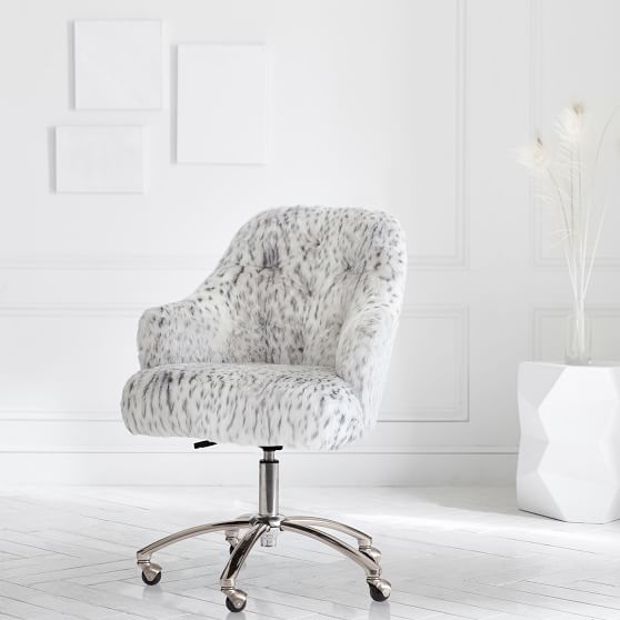 Gray Leopard Faux Fur Tufted Teen Desk Chair Pottery Barn Teen