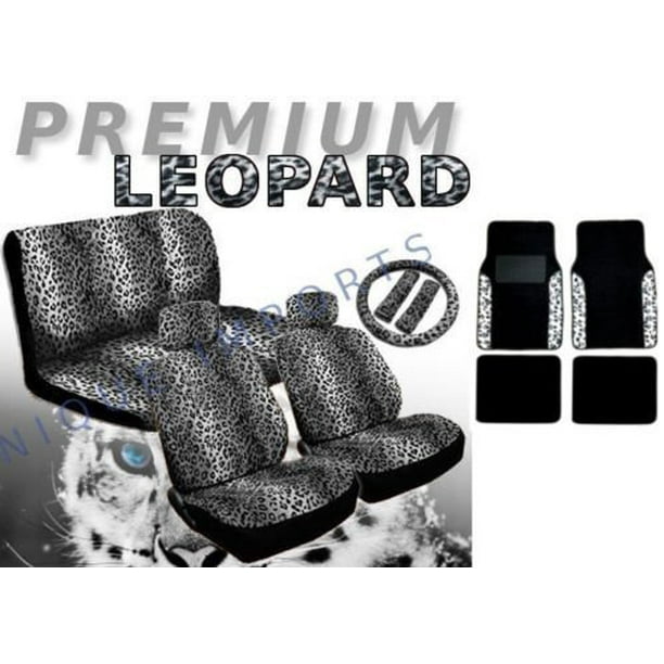 17 Piece Animal Print Seat Covers And Two Tone Floor Mats Gift Set Full Animal Print White Black Leopard Walmart Com Walmart Com