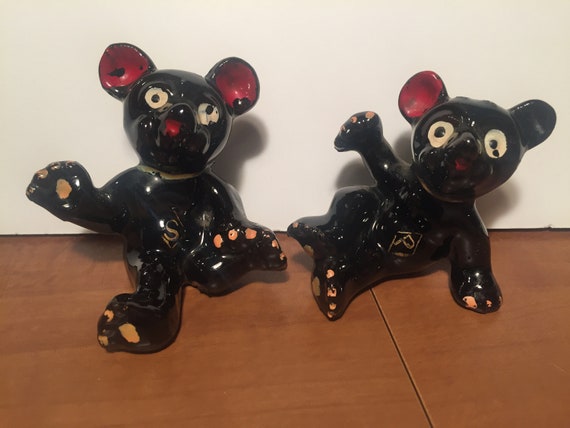 Vintage Black Bear Cub Salt And Pepper Shakers Etsy