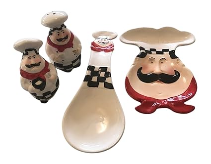 Chubby Chef Salt And Pepper Shaker Set Spoon Rest And Kitchen