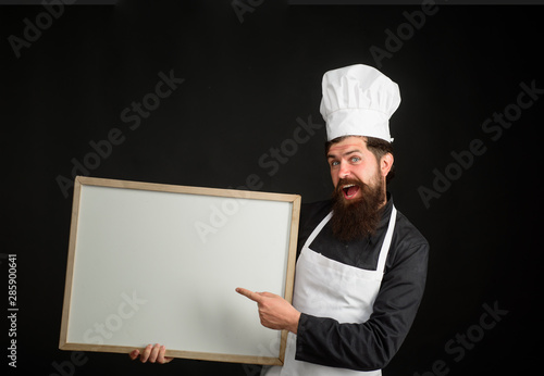 Chef Holding Chalkboard Young Chef Holding Menu Chalkboard