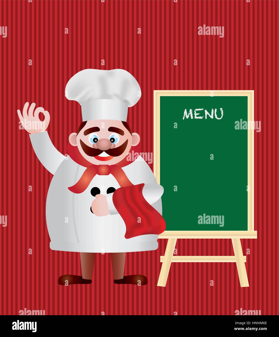 Chef With Menu Sign Chalkboard On Red Stripes Background