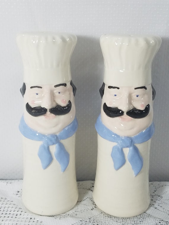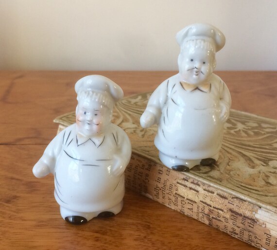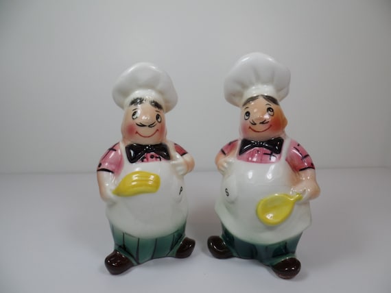 Salt Pepper Shaker Set Chef Men Ceramic Vintage Etsy