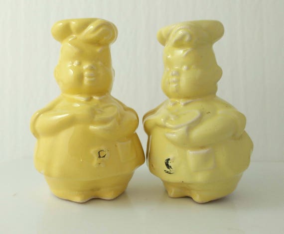 American Bisque Chef Salt Pepper Shakers Pottery Chubby Lemon Etsy
