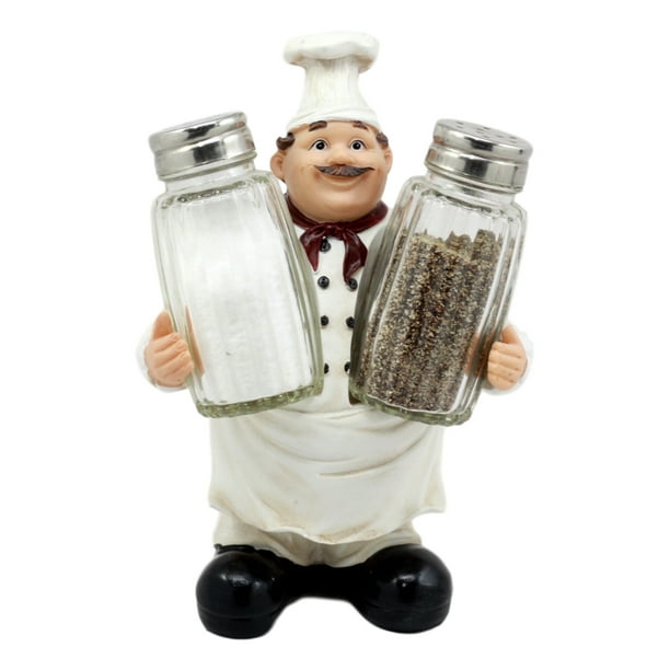 New Resin Chef Seasoning Spice Salt Pepper Shaker Holder Cart