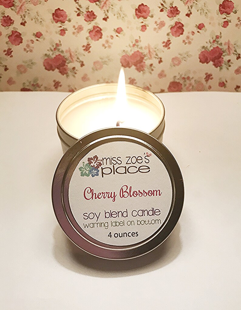 Cherry Blossom Soy Blend Candle Tin Hand Poured Candles Etsy