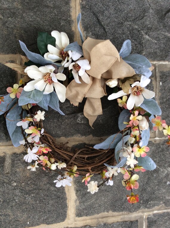 Spring Wreath Magnolia Wreath Front Door Wreath Cherry Blossom Etsy