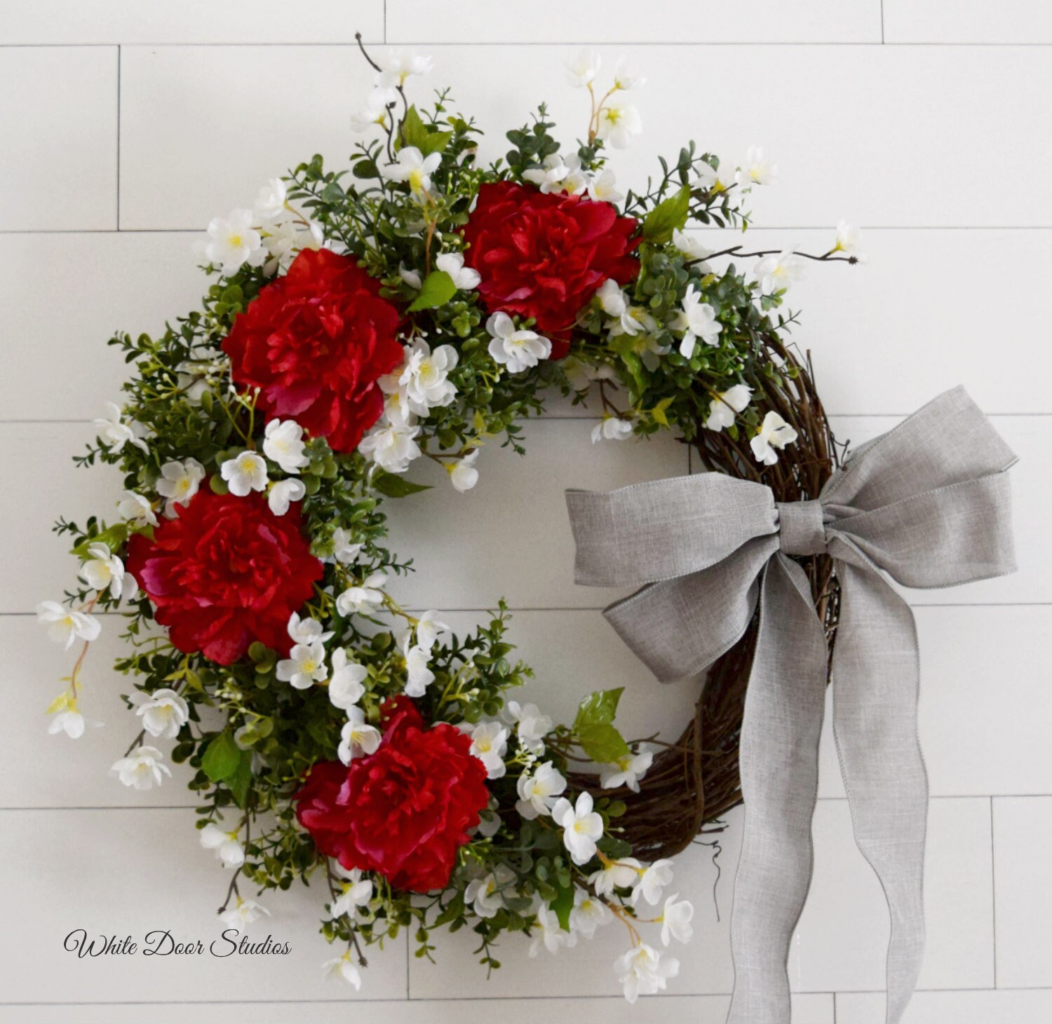 Summer Door Wreath Cherry Blossom Wreath Front Door Wreath Etsy